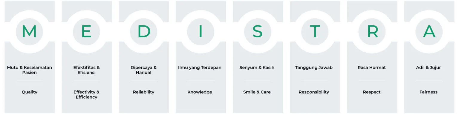 MEDISTRA HOSPITAL is a private hospital that commenced its operation on November 28, 1991. Located in the heart of Jakarta, Medistra is equipped with advanced medical technologies delivering excellent facilities and services by highly regarded specialists. In line with rapid development of health technology, Medistra continuously upgraded its facilities and improves the quality of services. With 40 outpatient clinics with the average attendance of 90,000 patients annually, Medistra is proud to have internationally well-known Doctors and Senior Professors. Medistra’s 5 center of excellence lies in Cardiovascular, Orthopedic, Gastroentero-Hepatology, Oncology, and Tropical and Infectious Disease. Supported by well trained and compassionate staff, we are highly experienced in handling VVIP patients and expatriates.